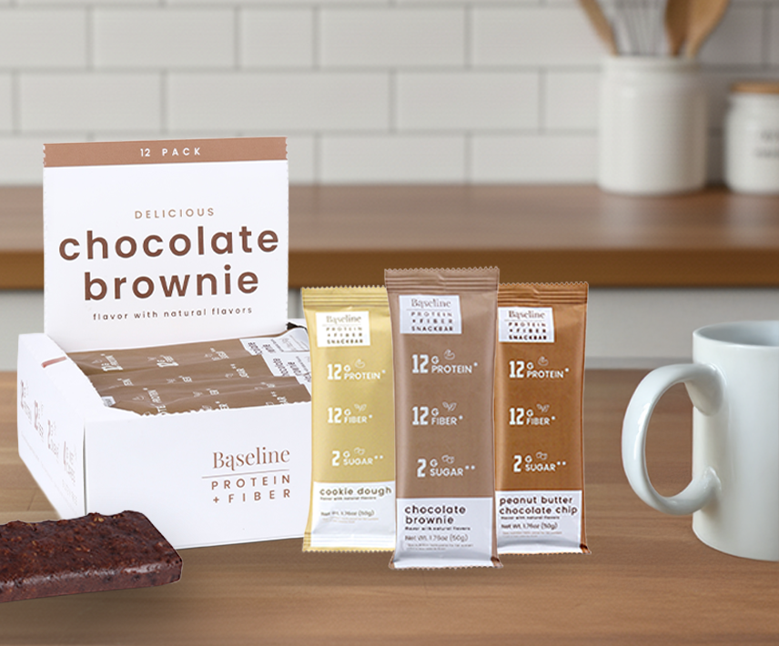 The mom who planned ahead, keeps a Baseline Bar in her bag, and takes 10 seconds to fuel up with protein, fiber, and indulgent flavors, no crash, no guilt.